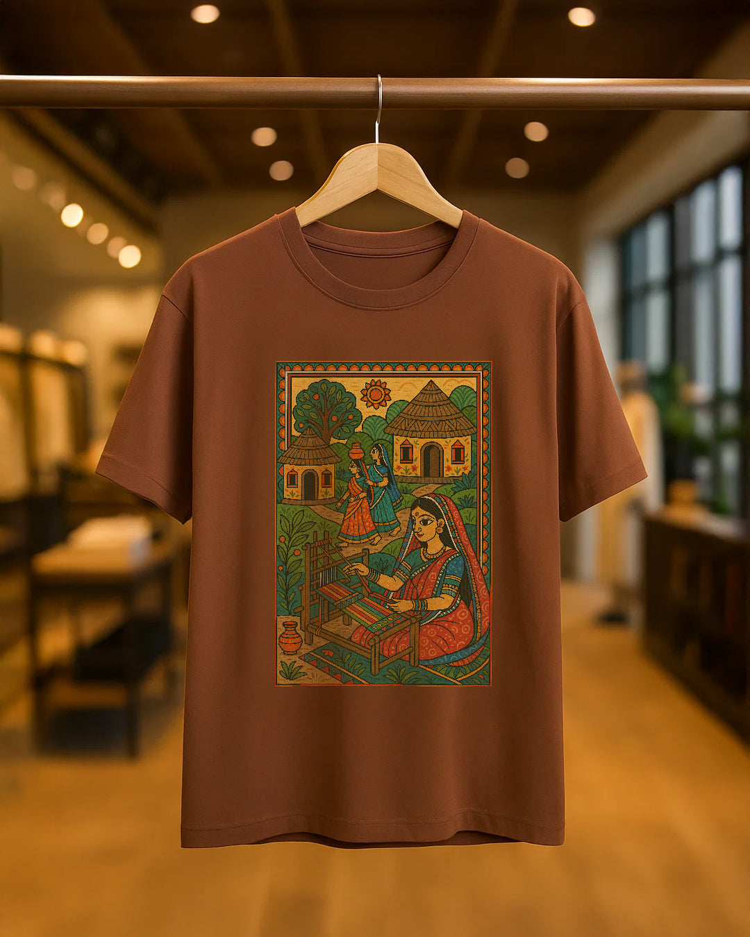 Madhubani art meets modern style – soft cotton tee with a cultural twist.